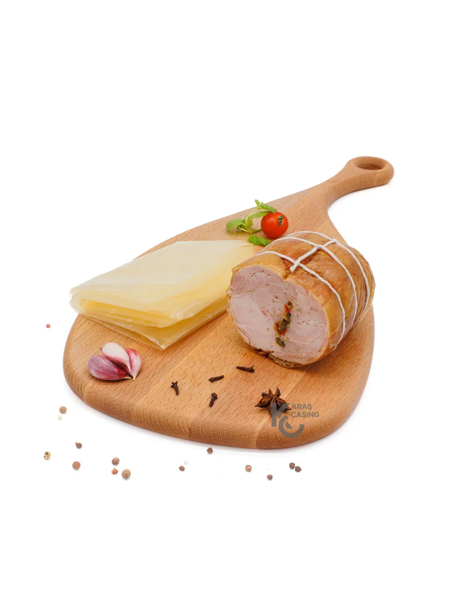 Высокая прочность и эластичность. Оболочка превосходит натуральную по прочности и эластичности, что гарантирует целостность при набивке и термообработке, а также идеальную форму готового изделия.